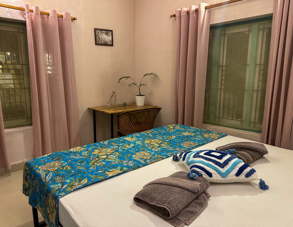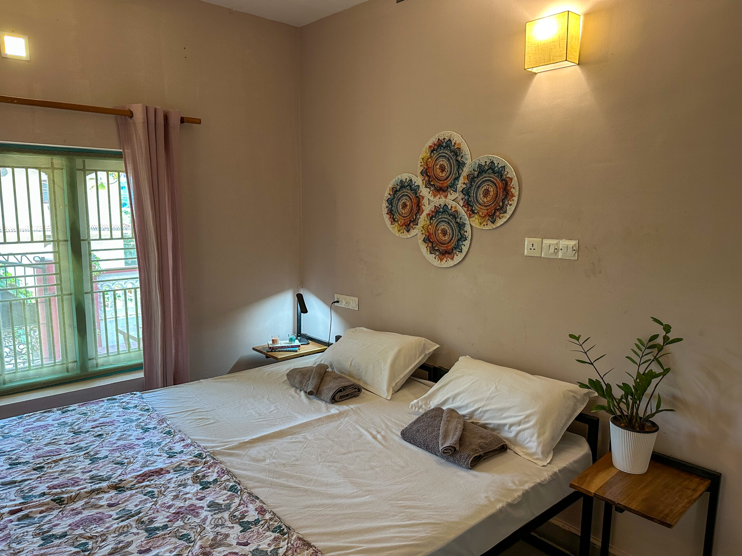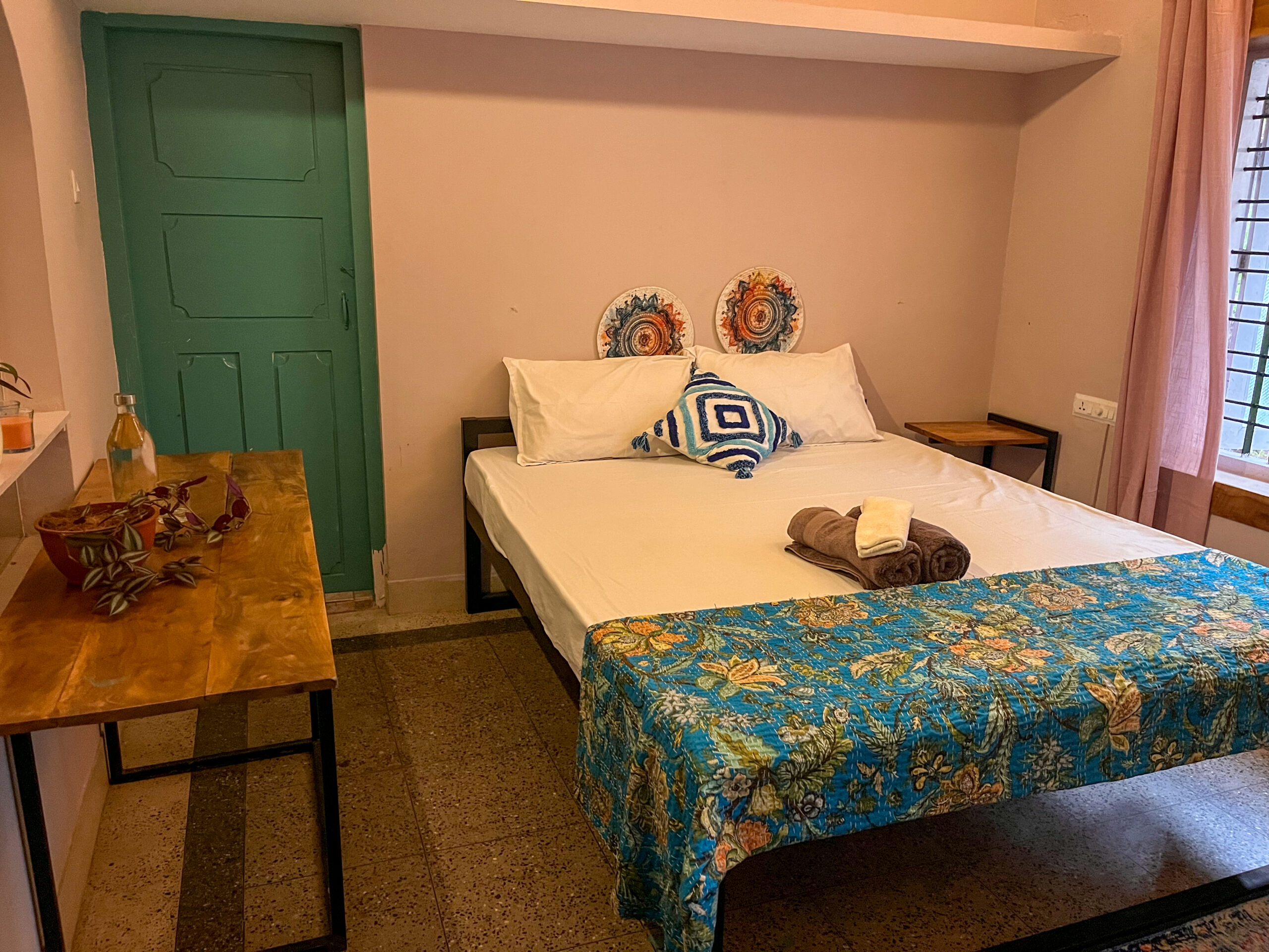 SINGLE PRIVATE ROOMOur single rooms are simple yet comfortable and they feature one single bed, a ceiling fan, desk, chair, and an ensuite bathroom with towels and sheets provided.